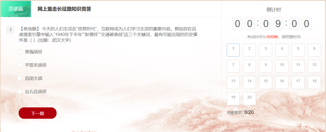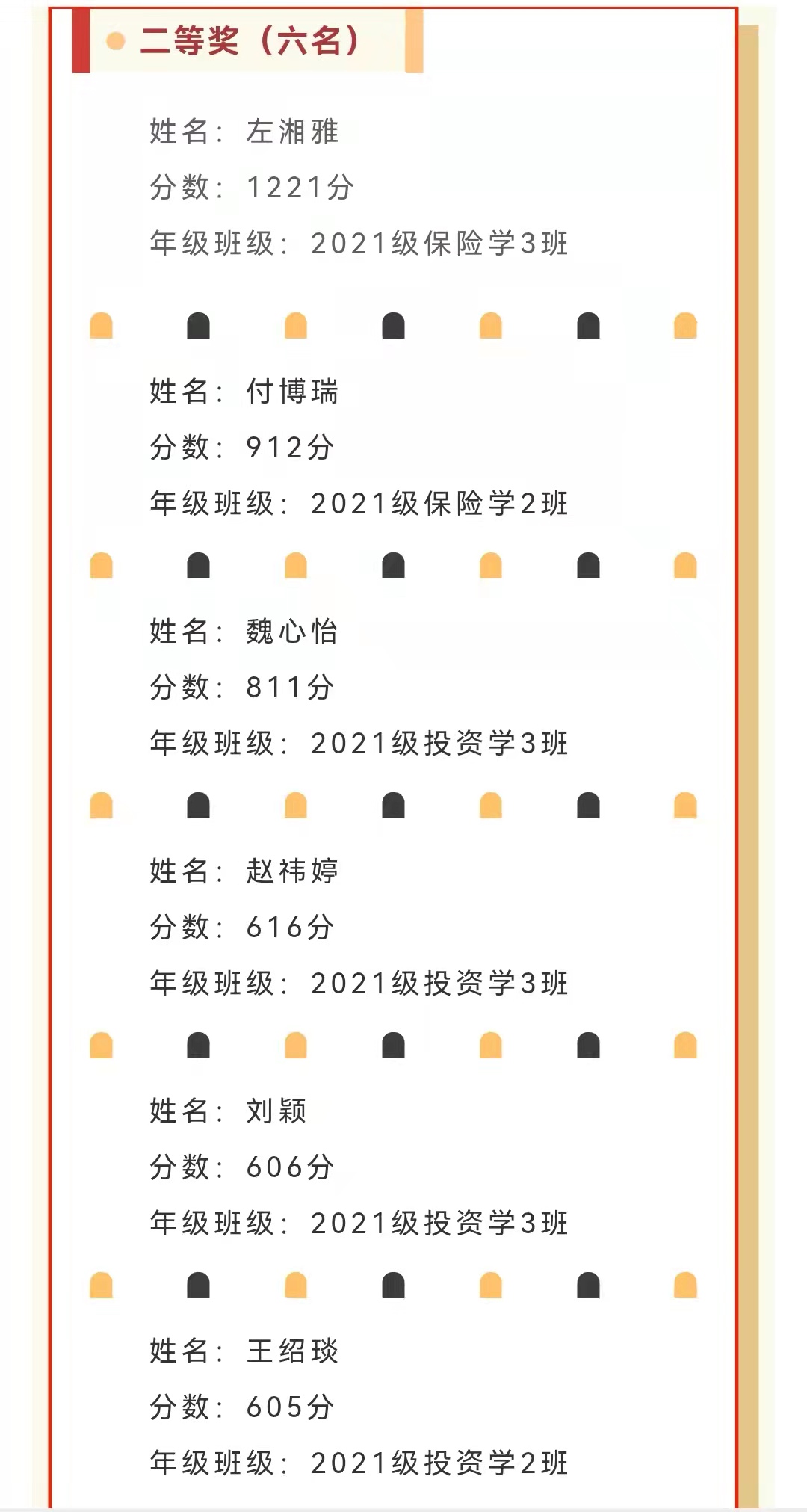 为鼓励2021级新生深入学好“四史”,传承弘扬“长征精神”,努力“走好新时代的长征路”,引导学生探寻红军长征的伟大历程和宝贵资源,进一步坚定理想信念,厚植爱国情怀,2021年11月3日至15日,投资保险系组织2021级新生开展了以“学四史忆初心,新长征再出发”为主题的“网上重走长征路”暨推动“四史”学习教育第一阶段知识竞答活动。我系2021级6个团支部200余人参与了此次活动。