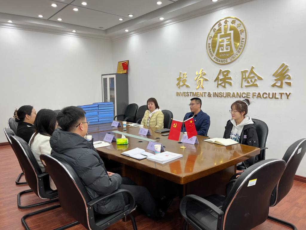 张杰对哈尔滨城市技术学院护理系的到来表示热烈欢迎,介绍了当前系内的基本情况,重点介绍了推进党建与业务深度融合的“三坚持三确保”工作方法。周宏洋介绍了哈尔滨城市技术学院护理系的基本情况,党建工作的特色与实践,就业导师制的推进落实情况等。与会双方就支部活动、纪实情况以及支部未来发展进行了深刻交流。双方共同希望以此次交流为契机,加强两系党建、教育教学、学生活动等方面交流,推进党建与业务深度融合。会后,哈尔滨城市职业学院护理系一行人参观了我校 “红色金融史”展览和投资保险系二级心理辅导站。