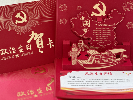 “我志愿加入中国共产党”——这个一生一次的抉择,也是一生一世的承诺。每一位共产党员都有两个生日,一个是呱呱坠地之日,昭示着“开启人生之旅”;一个是宣誓入党之日,代表着“初心与使命”。为给广大教师党员过好政治生日,切实增强党员党性意识,我院以赠送政治生日贺卡的形式传递组织关怀。每一份贺卡上都镌刻着入党誓词和生日寄语,誓词指引前行,寄语承载希望,将组织的千言万语化作一份叮咛,希望党员教师们在工作中时刻以高标准和严要求的姿态担起教育使命!
